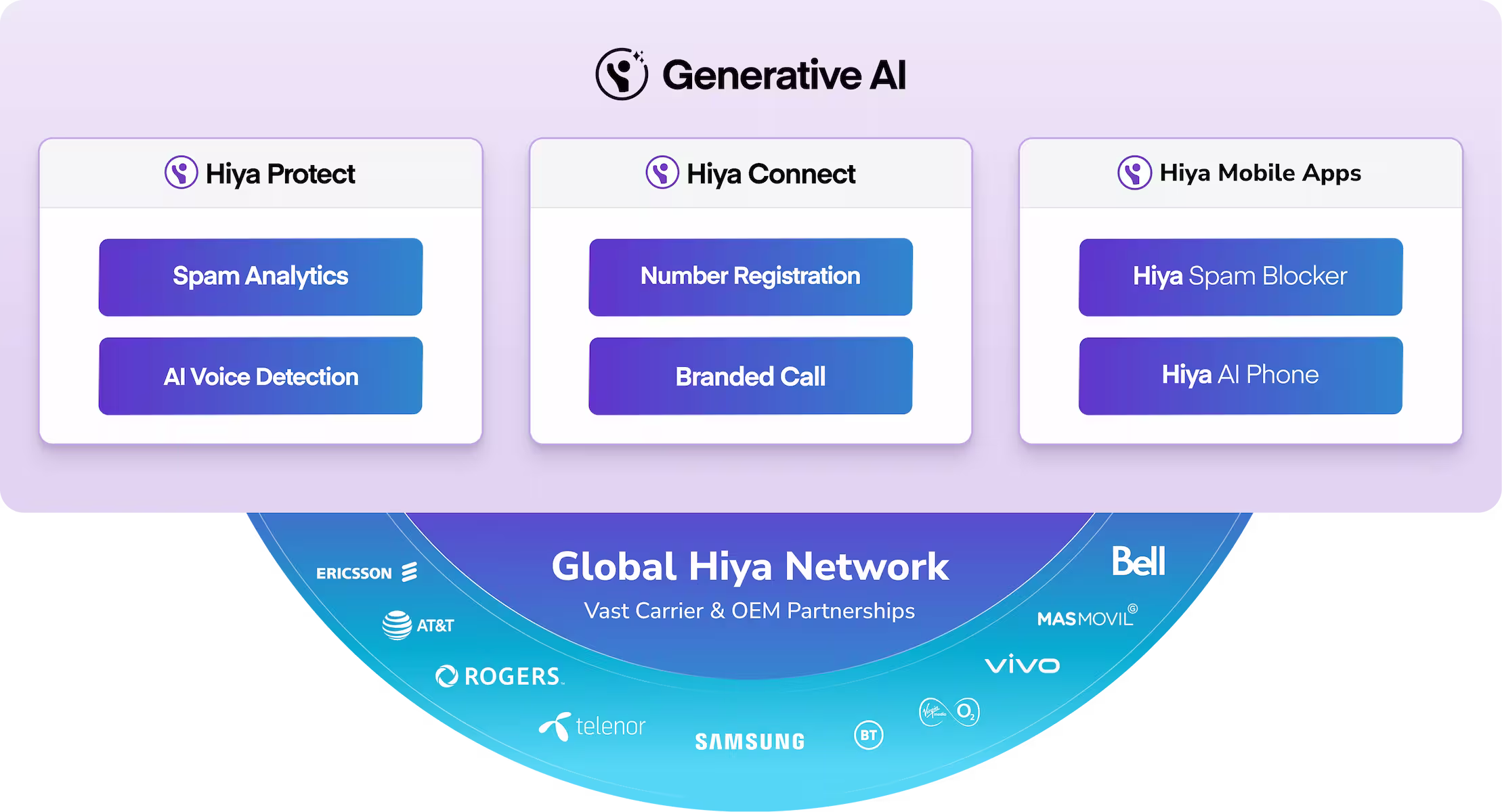 Hiya ist führend mit GenAI und Adaptive AI , die kontinuierliches Lernen zum Schutz vor Spam, KI-Sprachbetrug und Sprachbetrug ermöglichen.